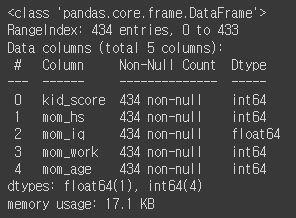 5열 434행짜리 크지 않은 데이터 입니다.