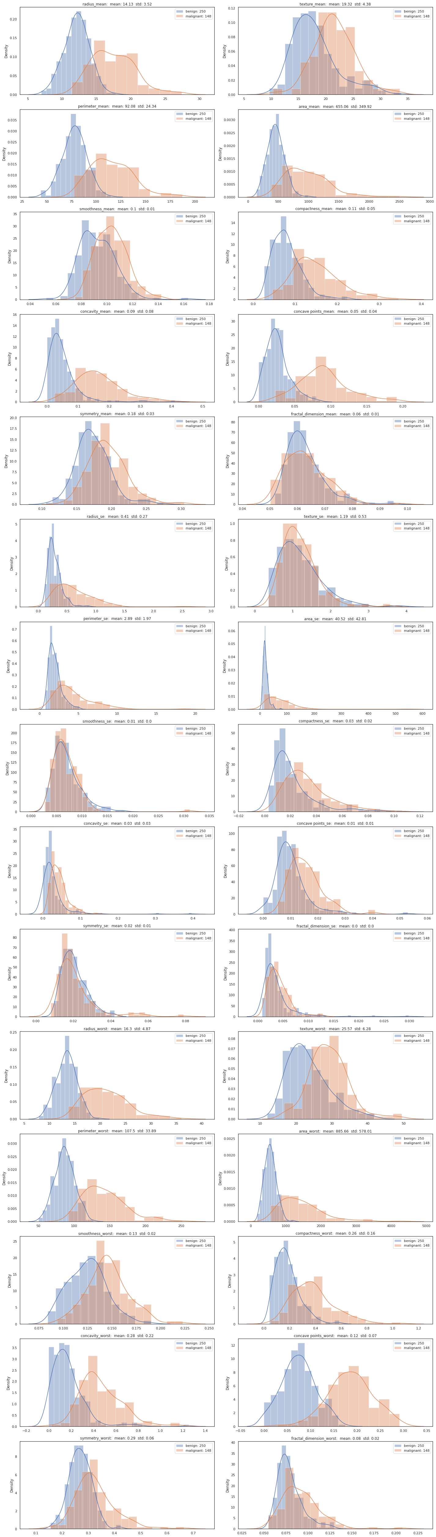 sns.distplot(feat[y_train==1], ax=axs.flat[i], label='{}: {}'.format(np.unique(df['diagnosis'])[1], len(y_train[y_train==1])))