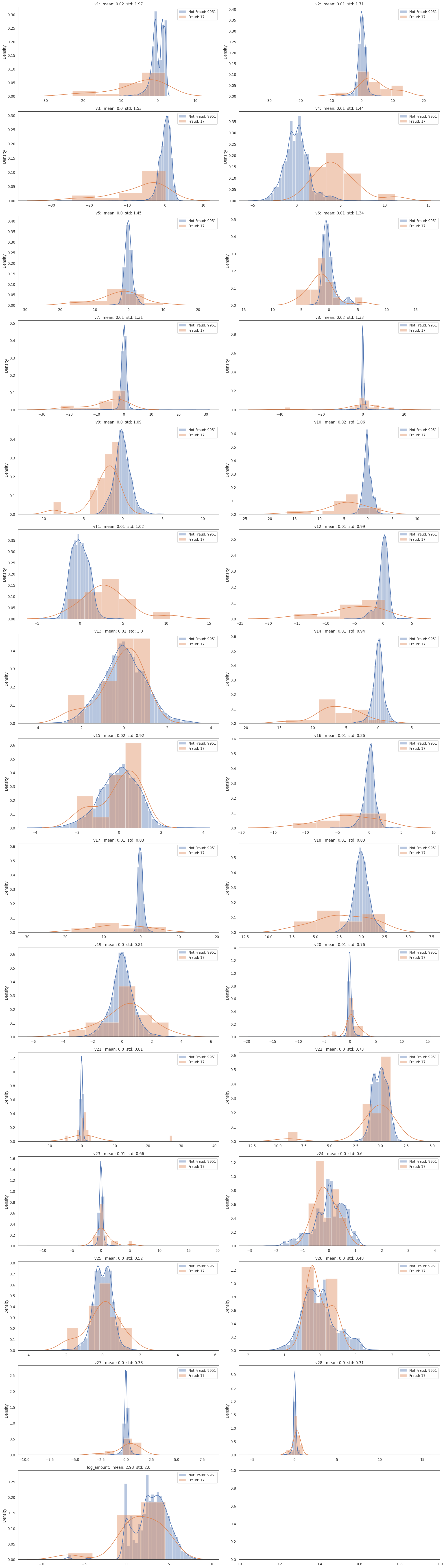sns.distplot(feat[y_train==0], ax=axs.flat[i], label='{}: {}'.format('Not Fraud', len(y_train[y_train==0])))