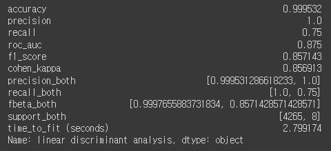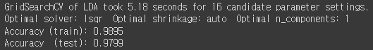 두말할것도없이 이번데이터에는 LDA모델의 성능이 가장 좋았다