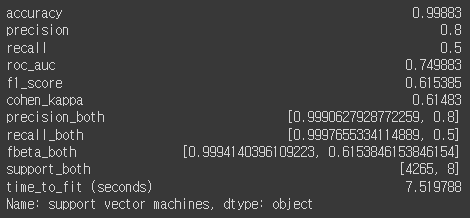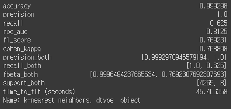 Undersampling 할때는 그래도 Accuracy는 다 1이나왔는데 Oversampling을 하니 떨어졌다.