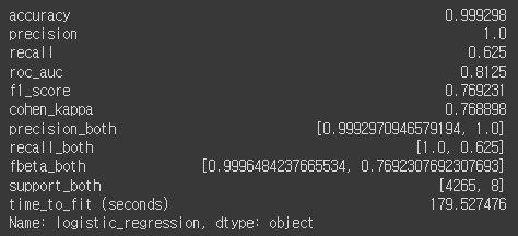 미탐지 데이터는 Undersampling한 Logistic Regression과 같은데, 오탐지 데이터가 확 늘어버렸다.