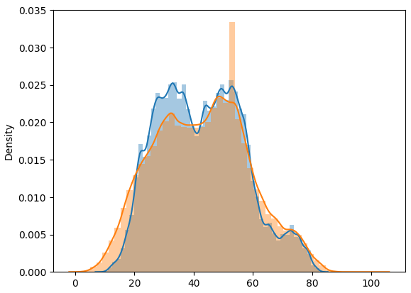 주황색이 실제값, 파란색이 예측값