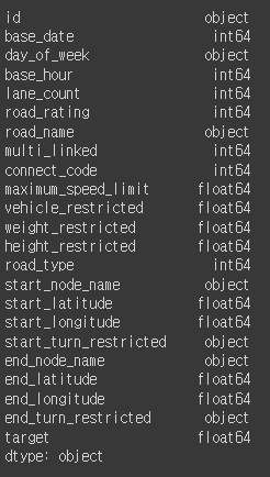 df = df.drop(['id', 'base_date', 'day_of_week', 'road_name', 'start_node_name', 'end_node_name'], axis=1)