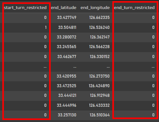 start_node_name과 end_node_name도 위,경도 데이터와 겹쳐서 삭제해주었다.